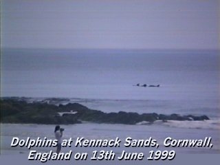 Here are a few pictures of dolphins captured with my video camera at Kennack sands on the Lizard pennisula, there were about 7 dolphins in the group. They came to around 100 metres of the shoreline. Quite a amazing site to see them in so close. The weather conditions were sunny no wind around 16 degrees centigrade.